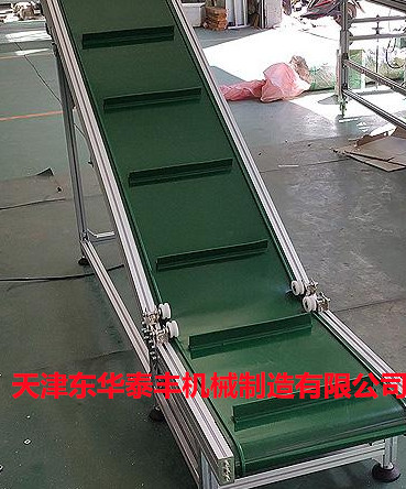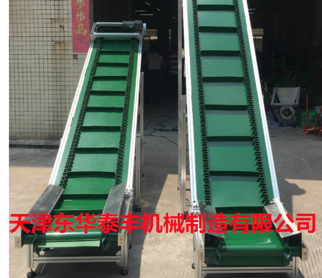 擋板輸送帶和高凸度的一字型花紋輸送帶原理相類似。它就是根據(jù)輸送帶的產(chǎn)品規(guī)格和功能需求,在合適的橫向剛性平面基帶上按照要求粘接橫向擋板的一種特殊加工輸送帶。它的構(gòu)成是體現(xiàn)在這三方面: