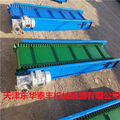 擋板輸送帶擁有水平輸送、傾角輸送、垂直輸送、定量包裝輸送等多種功能。主要用于散裝物料的輸送,包括煤、礦石、沙子、化肥、糧食、食品等。輸送的顆粒從粉末狀到400mm的大粒度皆可。根據(jù)輸送機(jī)的功率,擋板輸送帶的輸送量能達(dá)到1m3/h~6000m3/h。