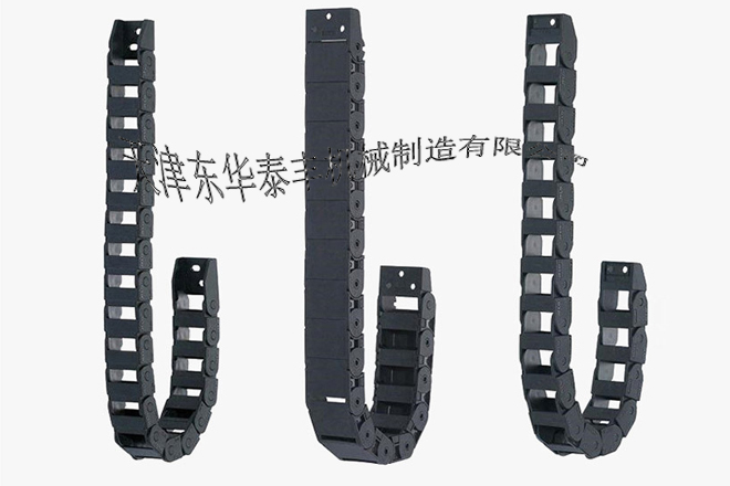 ? 拖鏈外形似坦克鏈,由眾多單元鏈節(jié)組成,鏈節(jié)之間轉(zhuǎn)動(dòng)自如。相同系列的拖鏈內(nèi)高、外高、節(jié)距相同,拖鏈內(nèi)高、彎曲半徑R可有不同的選擇。單元鏈節(jié)由左右鏈板和上下蓋板組成,拖鏈每節(jié)都能打開,裝拆方便,不必穿線,打開蓋板后即可把電纜、油管、氣管等放入拖鏈內(nèi)。